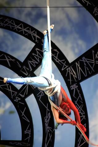 La scène était installée sous une bretelle d'autoroute. En arrivant, on trouve ça bizarre, il n'y avait pas la place de le faire ailleurs? Puis le spectacle commence, et c'est là que ça devient magique! Il y a une espèce de musique en fond, un espèce de truc indéfinissable qui, conjuguée aux costumes et à la démarches des acteurs, vous plonge dans une sorte de rêve éveillé. mais ce n'est que le début et dès que commence réellement les acrobaties on se retrouve complètement ébahi devant tant de force et de beauté.